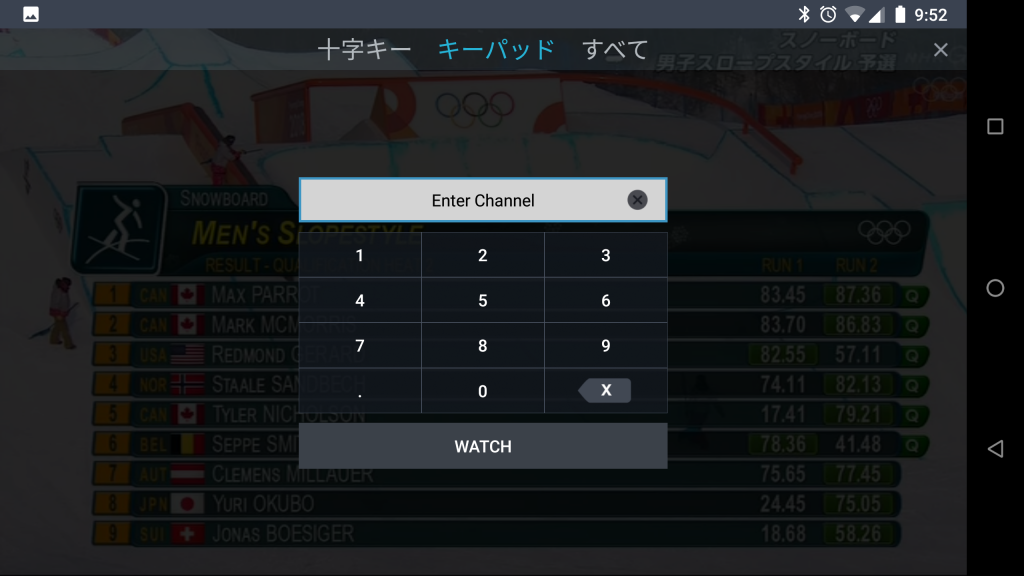 こちらはキーパット操作画面です! こちらであれば選択したい番組を選び下のWATCHをタップすることで見たい番組に飛ぶこともできますが電源や終了することはこの画面からはできないので一旦閉じて違う画面から終了することになる訳です。ひとつの画面から全て操作ができると使いやすいのでは・・・とついつい考えてしまう場面があるのがとても残念ですね!