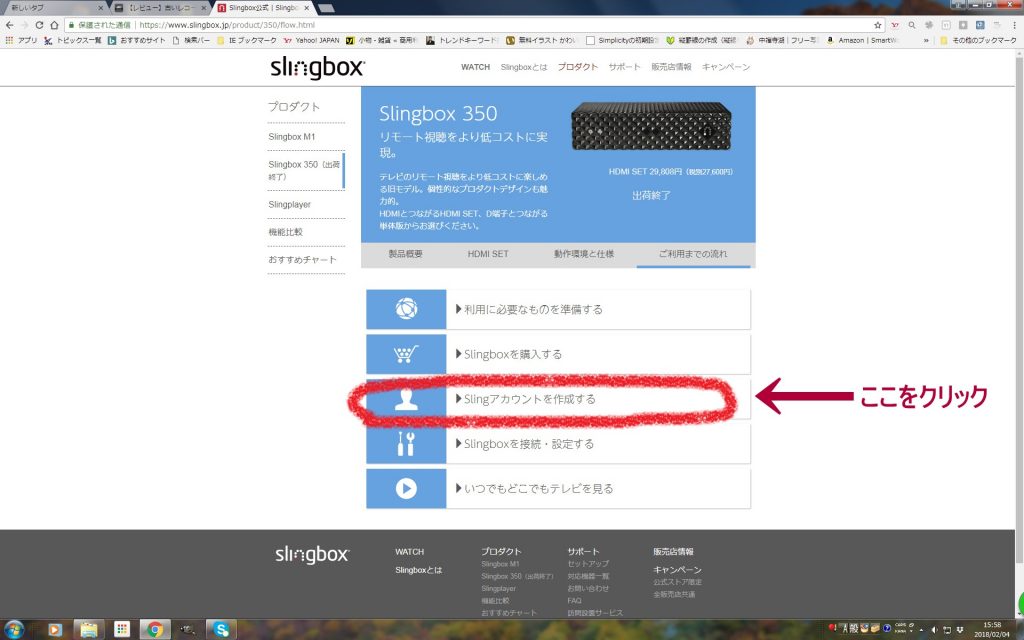 つぎにソフト(アプリ)を入れて視聴できるようにしていきます!先ずは、PCからです。ただ、Slingbox 350はすでに製造が終了しており対応アプリも終了しているようです!でも心配無用!PCのブラウザで起動視聴できるとのこと管理人はInternet Explorerで繋げていこうと思います。 とり合えずはSlingboxのID取得から手続きをしていきましょう!「Slingbox」などで検索、公式サイトからIDを登録。メールアドレス・パスワードなどを登録(^^)!