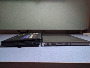 さすがに、10インチと13インチでは筐体自体大きさが随分違うもんですね! 逆にいかにネットブックが携帯性に特化しているかが分りますね(その当時にしても・・・) そして、注目すべきは筐体の厚さでしょうR634はS10の半分ほどの厚みしかないのはビックリです!!この厚みの恩恵なのかR634はS10とほぼ同じ重量になっている訳です。ん~時代は確かに進んでいるんですね!