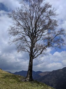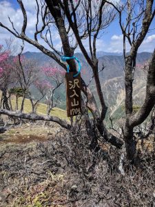 これが有名な?”孤高のブナの木”中倉山頂上付近にあります。 これを見に登山をする人も多いようですね(^^)! 何せ日本ではじめての公害問題(足尾鉱毒事件)で今でも周辺の山々は大きな木が自生してないんです。そんな鉱毒にもめげず、”すん”と立つブナの木はやはり見るものを惹きつける何かがあるようです(^^)! そして、中倉山の更に先「沢入山」です。遠かった~(~_~;)