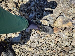 そして、この靴の隠れた特徴? 軽さ・・・しばらく登山から離れていた管理人のっけからの急登で足にきているのですが思いのほか前に進むことができているんです! そう、靴が圧倒的に軽量なんです。 体力のない管理人に「滑らない・足首が使える・靴が軽い」この3点セットは効果絶大のようです。それでいて、足首までしっかりサポートしてくれている!ん~なかなか良くできているシステムなんですよね~(^^)