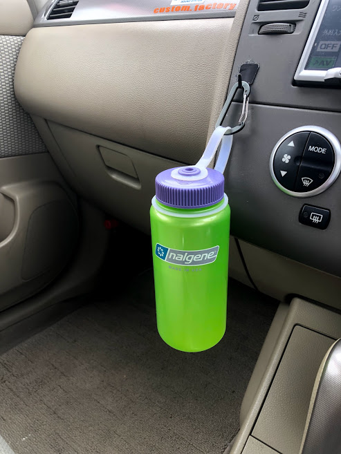 純正のドリンクホルダーが使いづらくカラビナで掛けた方がいい感じ👍