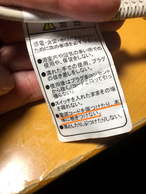 以前、使用中にコードから小さな火花が散っていたことも⚠(*_*)