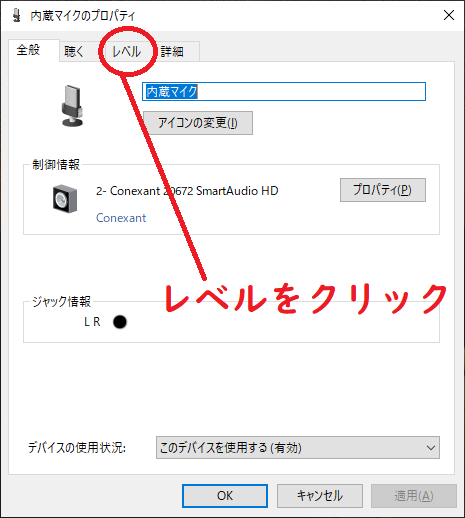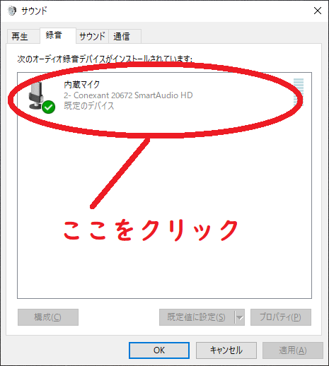内蔵マイクをダブルクリックする