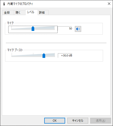 ブーストを30dBに上げマイクを50にしてみても…?