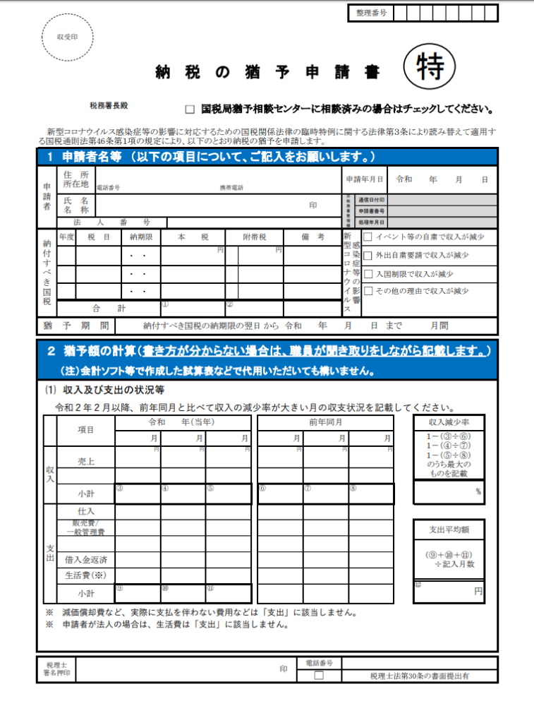 そんなこともあり、来る5月20日に引き落としが予定されている消費税の納税猶予申請を行ってきました。